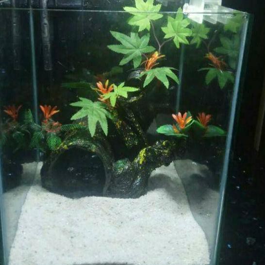 Tank Untuk Ikan Discus Dengan Tamanan Palstik Dan Pasir Putih